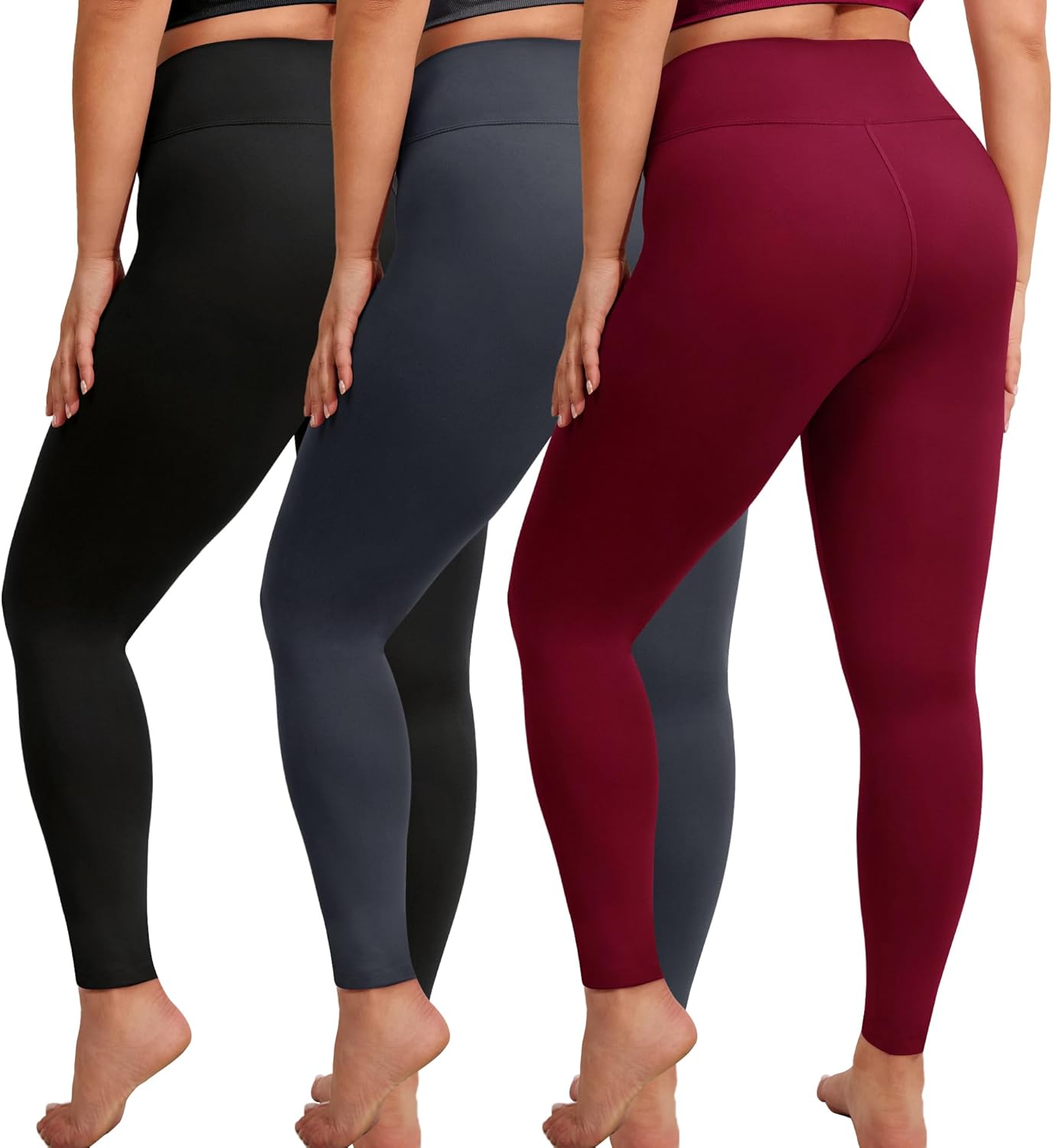3 Pack Plus Size Leggings for Women-High Waisted Soft Stretchy Yoga Pants,L-5XL