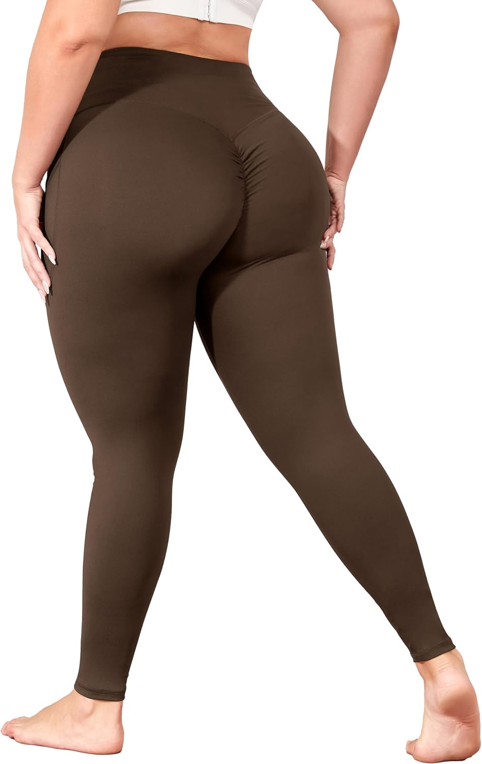 Plus Size Butt Lifting Leggings with Pockets for Women, L-5XL Yoga Pants Tummy Control, High Waist Workout Leggings