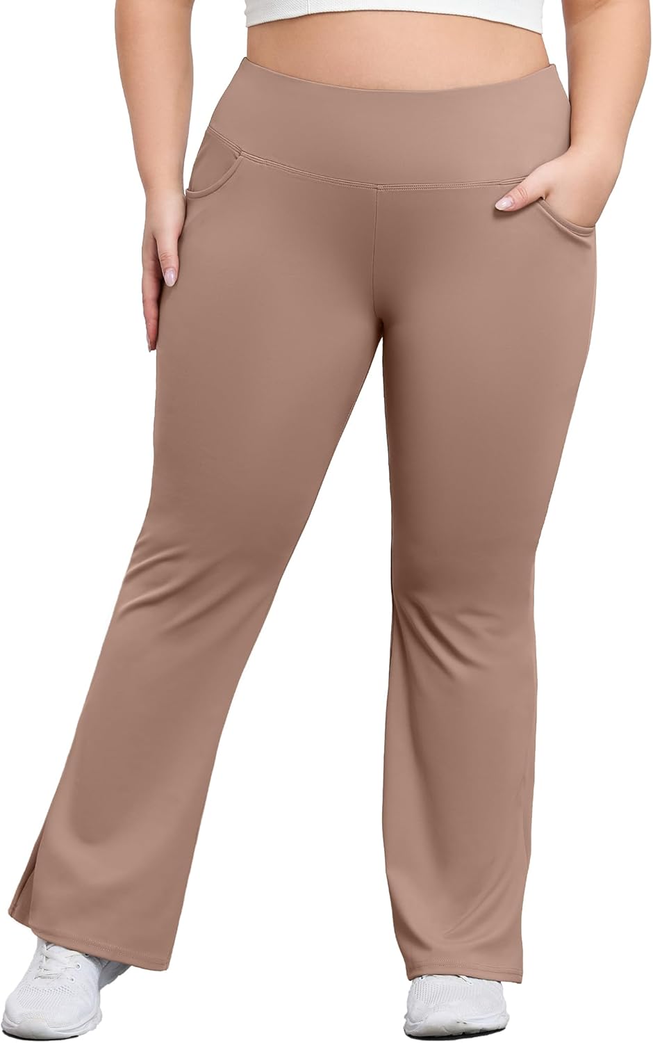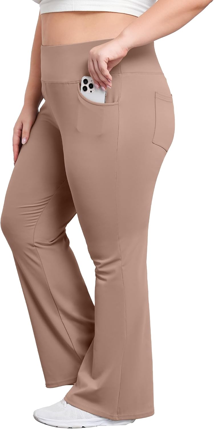 Plus Size Flare Leggings for Women with Pockets High Waist Yoga Pants Bootcut Bell Bottom Workout Leggings