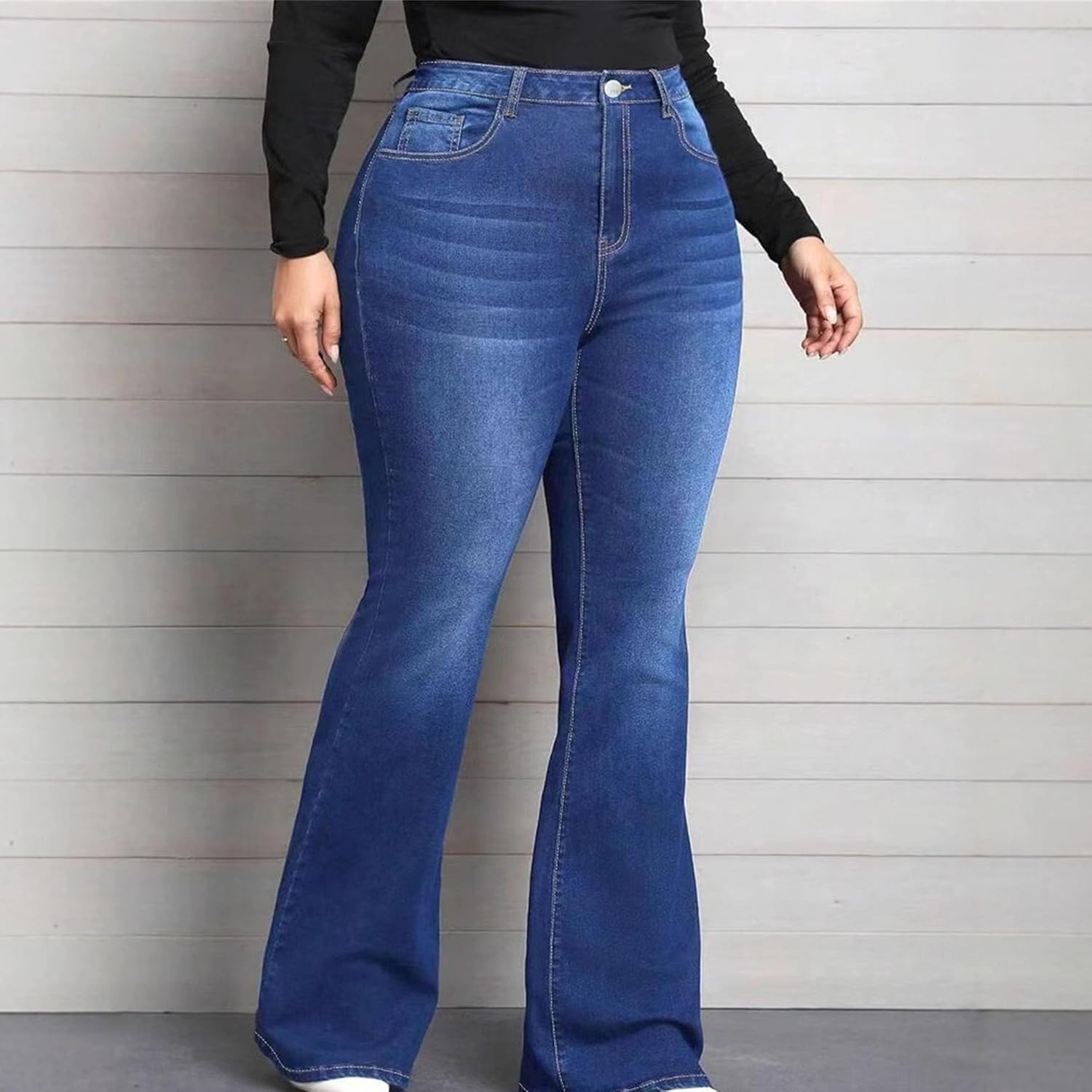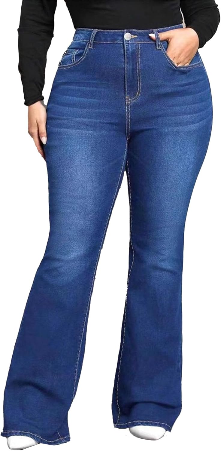 Plus Size Flared Jeans for Curvy Women High Waisted Stretchy Boot Cut Trendy Denim Jeans