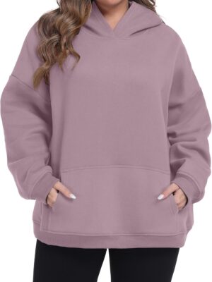 Plus-Size-Hoodies for Women Casual Kangaroo Pocket Sweaters Trendy Long Sve Pullover Sweatshirts Cute Loose Tops