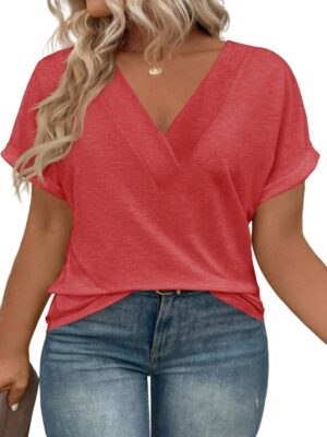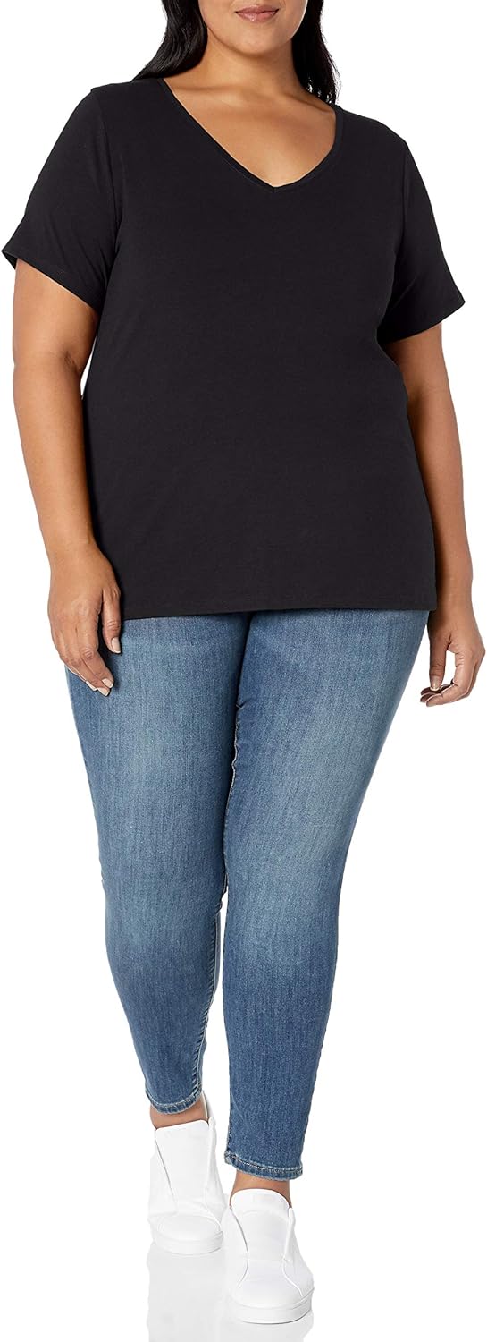 womens Plus Size Classic-fit Short-sve V-neck T-shirt